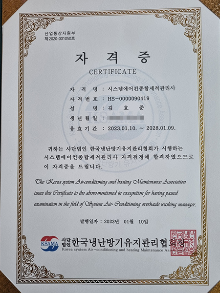 세탁기에어컨청소탑크린 대표 김효준